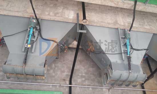 壓濾機過濾完成后,可將濾餅卸落至配套的儲泥斗,便于集中裝運。泥斗的大小可以根據(jù)壓濾機型號和客戶要求定做,打開方式分為電動和氣動兩種。